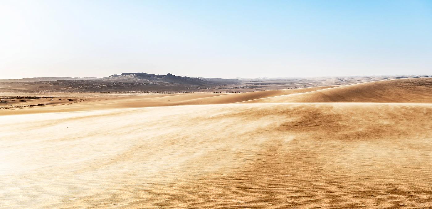 Seeds and sand are blown over the Namib dunes during a sand storm along the edge of the Hoarusib River along the Skeleton Coast.