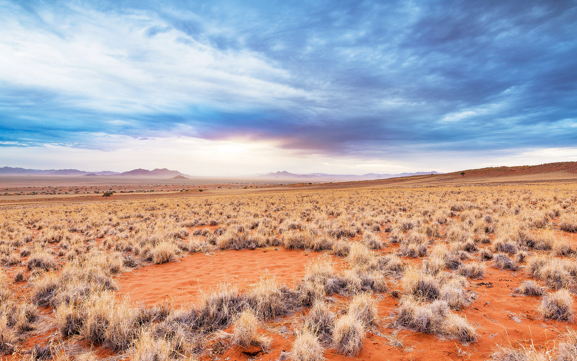 Fairy circles are illuminated in the Namib Rand park as the sun breaks through the clouds one last time before the life giving rain falls on this dry land.